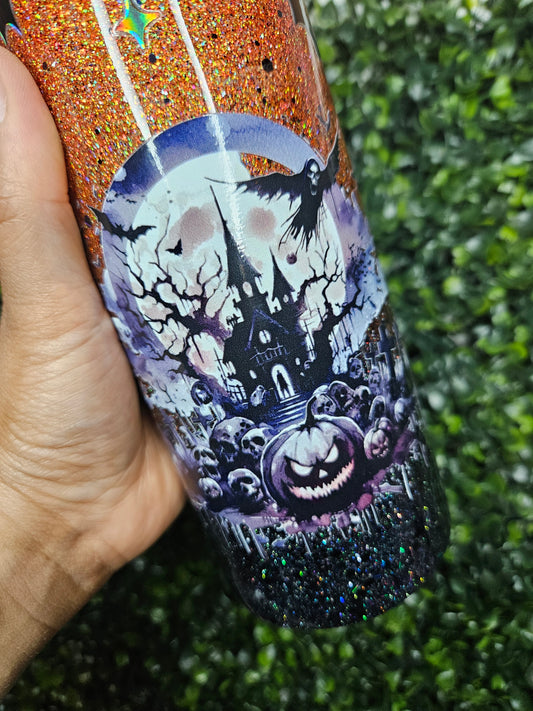 20oz Haunted House Ombre Glitter Stainless Steel Tumbler